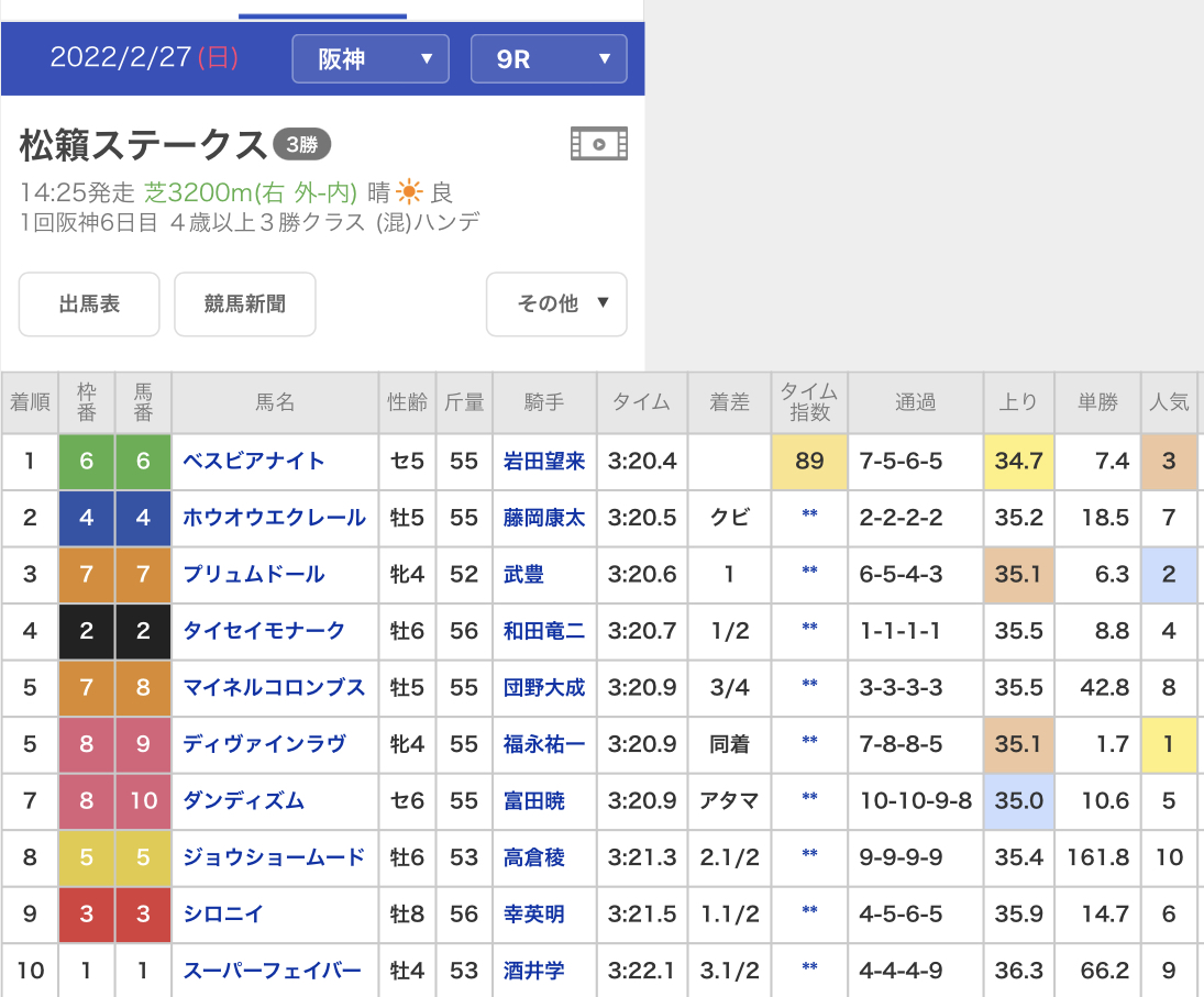あ、ここで言うメンバーは騎手の事ね。望来とか武豊とか和田とかが騎乗してたぞ