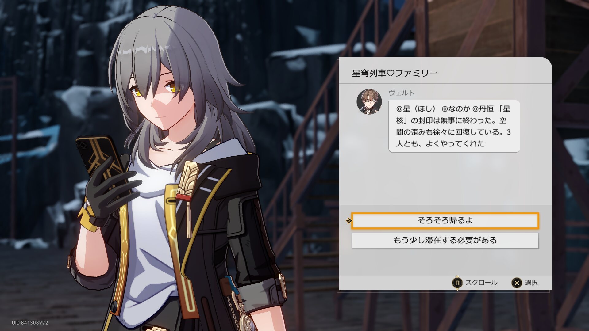 もう一人の僕もといゼーレとやらがスタレゼーレと似てるなら、本来のゼーレに近しい人もこの銀河にいるのかな?こういう繋がりを見せてくるゲームなら近しい存在がいそうだ。