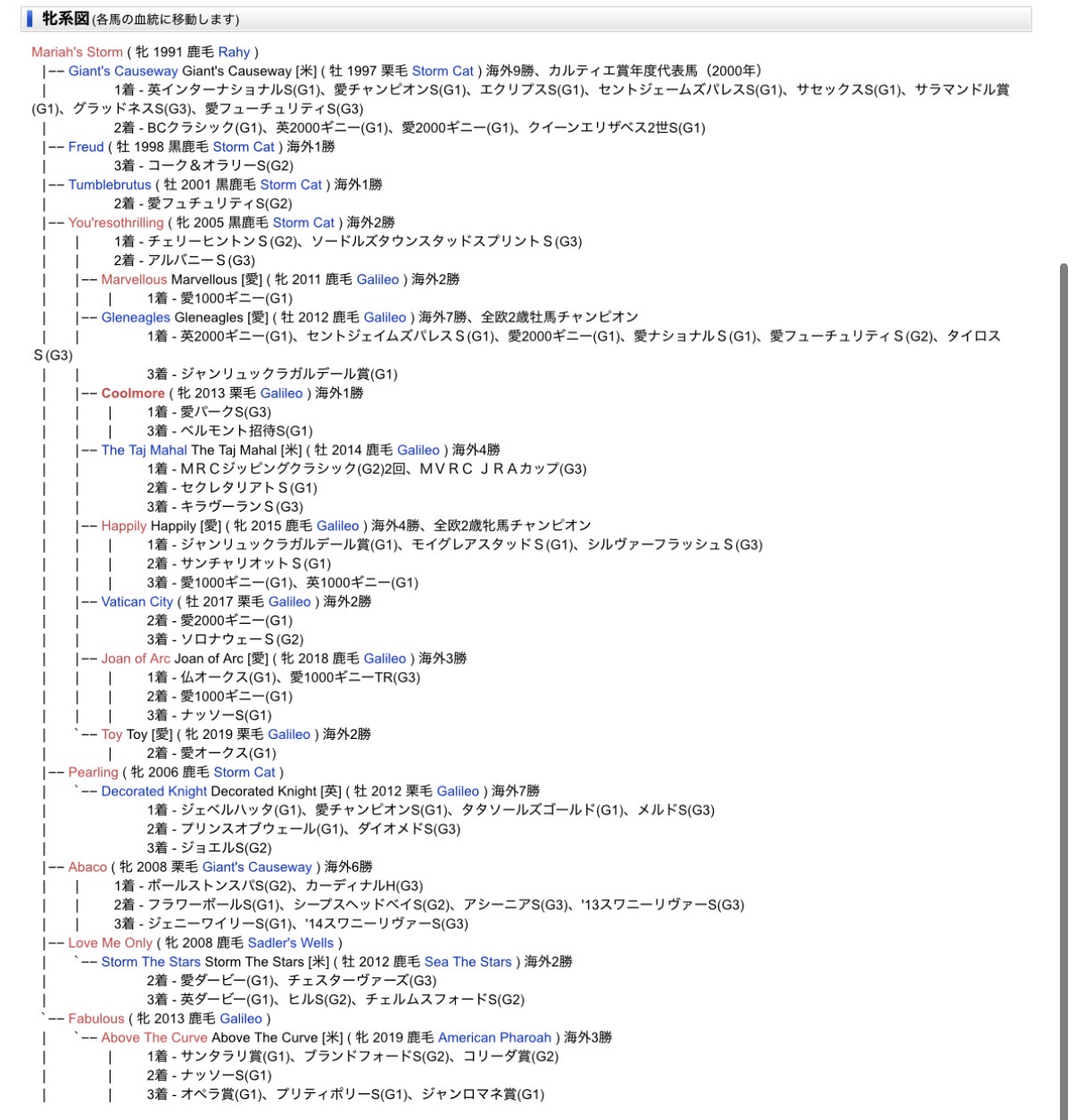 牝系見れば分かるけどクールモア牝馬の中でも一番ブラックタイプがやばい牝馬だよ
