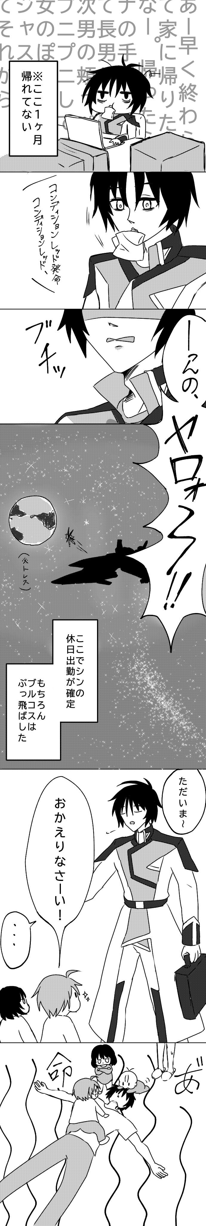 【子世代ネタ・一応閲注】アスカ家の日常|あにまん掲示板トリィ!トリィ!トリィ!トリィ!トリィ!トリィ!長男「あ〜、あと5分」ルナマリア「起きなさいっ!」長男「へぶっ!」三男「今日も平和だね。」三女「ねー。」bbs.animanch.com - 2125/10/01(水) 22:39:50