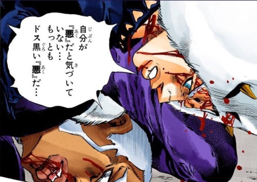 ブチャラティ的には前者のニュアンスが正しいと思うけどスラング的な意味なら外道な悪役全般として使われがち
