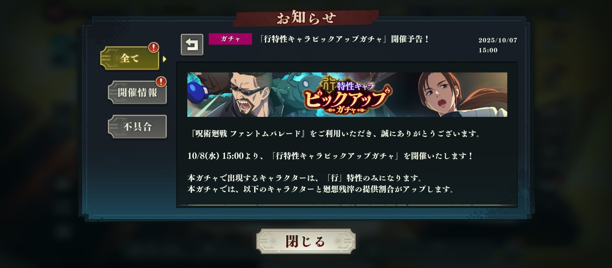 前回が幻、その前が行だったのでおそらく推奨属性は夜か影だと思われるが… - 9二次元好きの匿名さん25/10/03(金) 07:48:06
