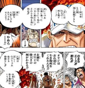 というかエース自体も別に青キジとかからは飄々と逃げてたのに赤犬のしょーもない煽りに乗るの割と意味不明なんスよね