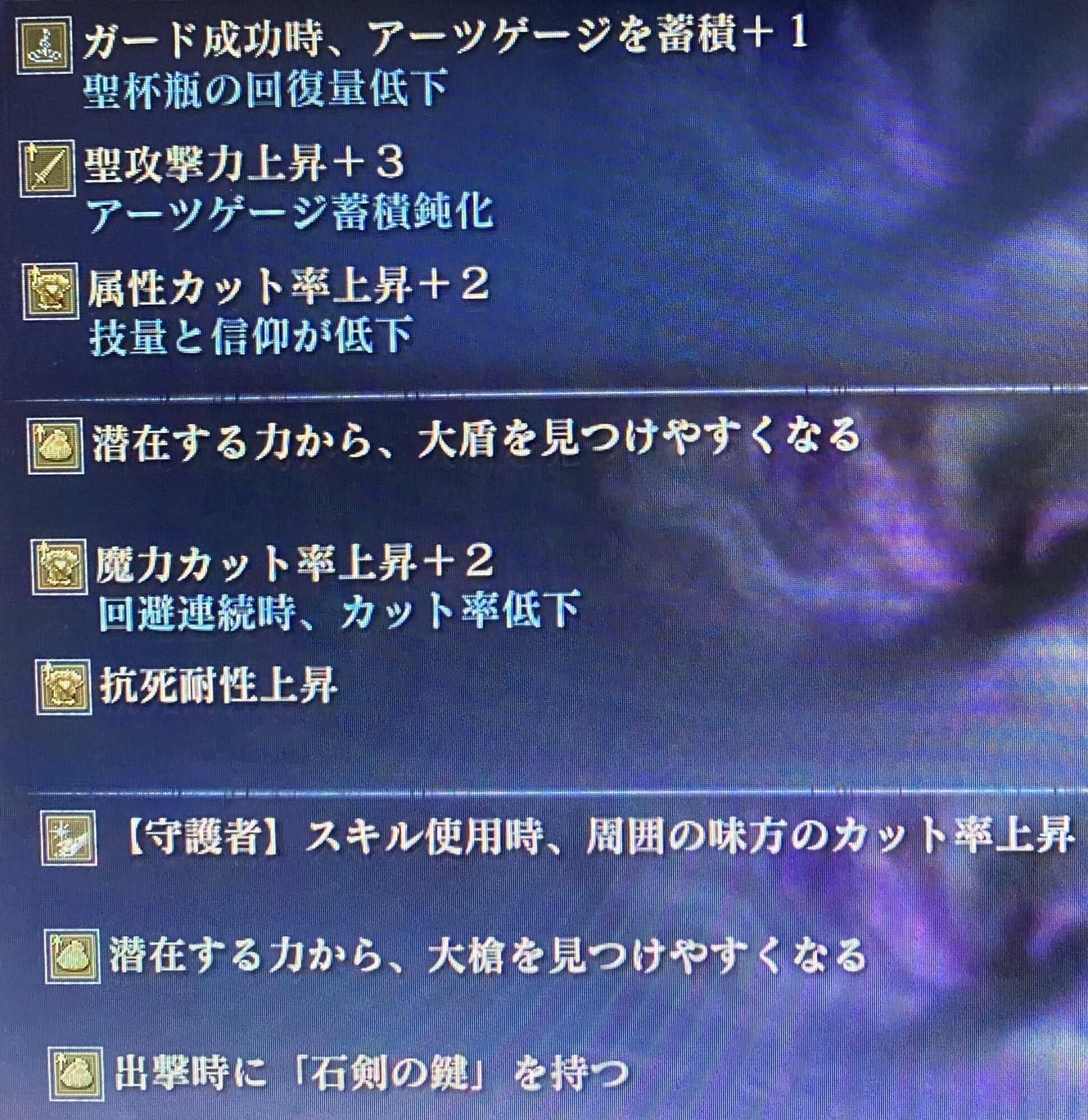 何故かナメレスだと勘違いして、ビルドも聖属性、祈祷も聖属性集めてたのが俺なんだよね