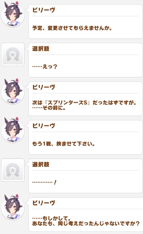 特例でセリフ変えるか、スプリンターズの時は何連戦目でもセリフ無しにしてほしかった