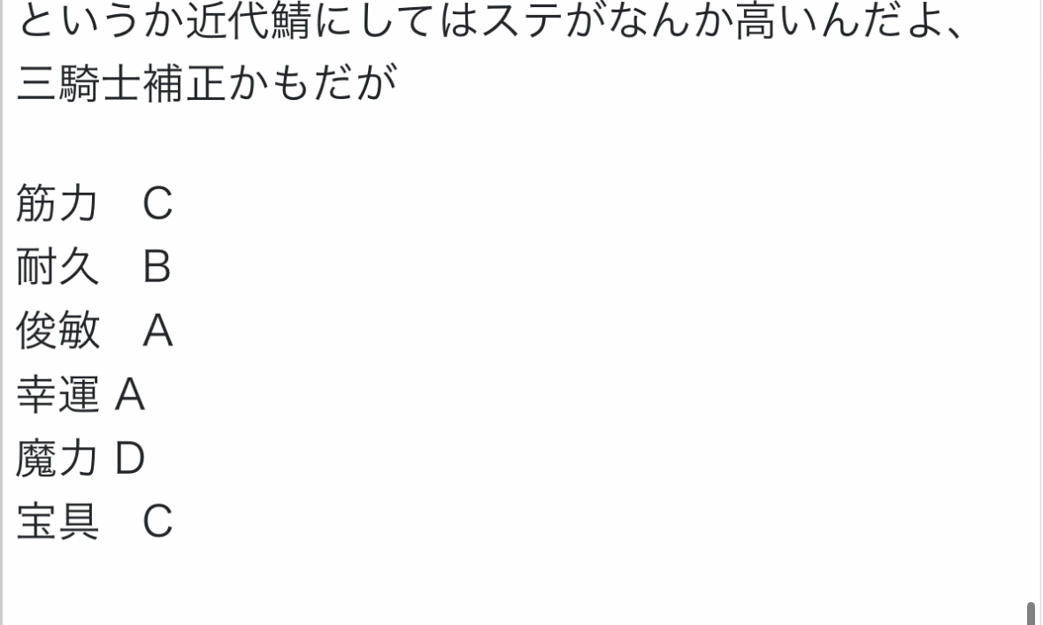 今調べてきて知ったけどランサーの基礎ステータスって
