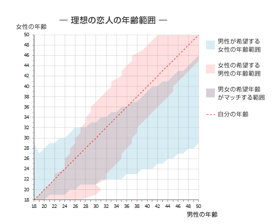 婚姻率自体は大きく変わらずにこの傾向がでている、全体的に同年代での結婚が増えてる
