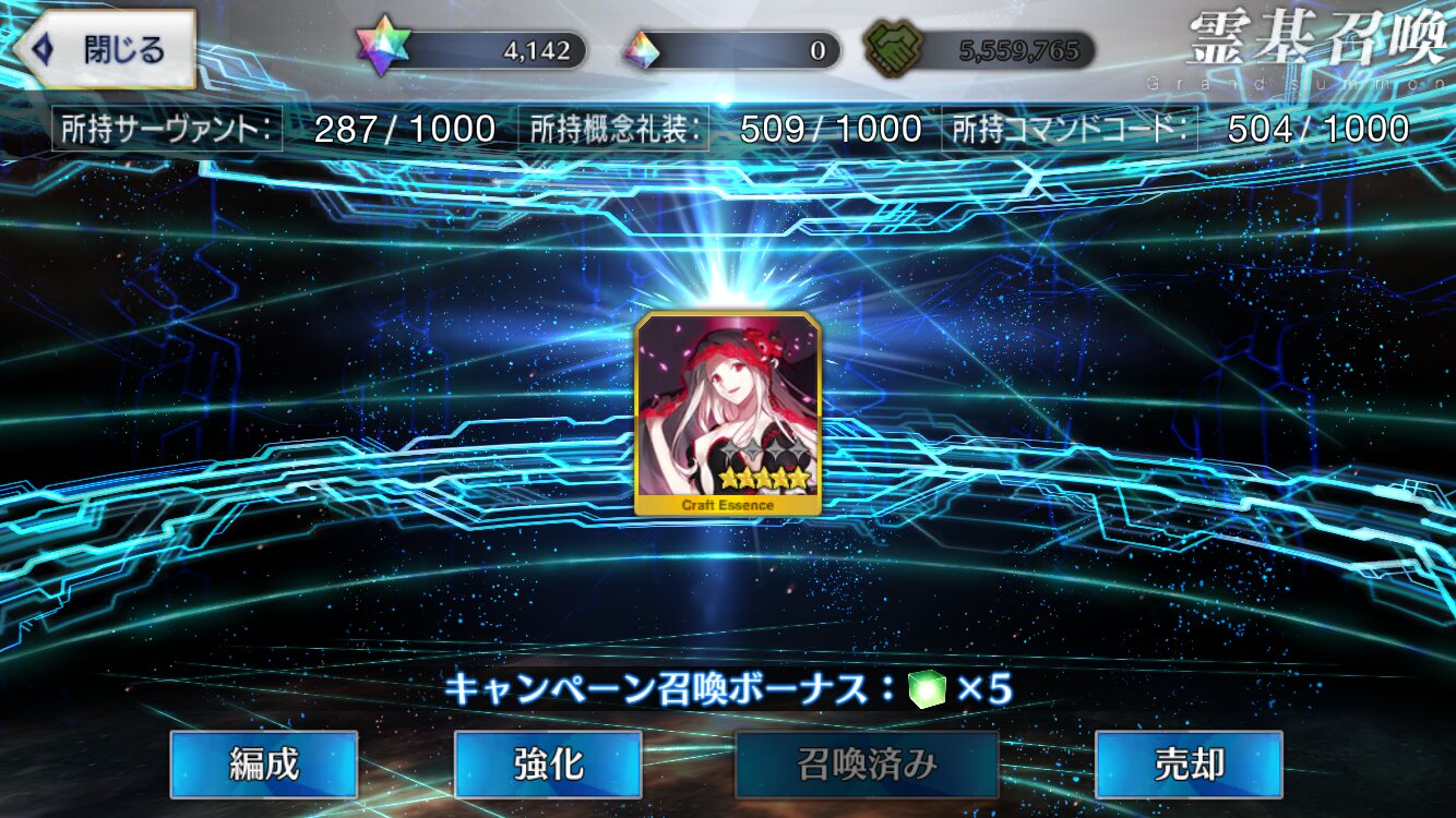 配布礼装2凸した……今回割と落ちるな