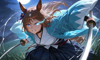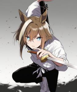 左のフジは手をドアップするためにhand focus, hand in foregroundとかしてるけどこれをsword in foregroundにしてみるとか
