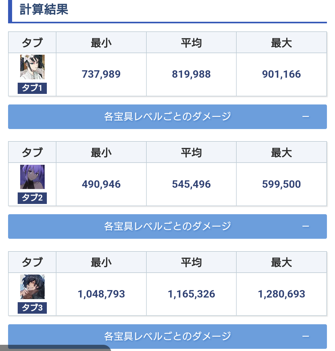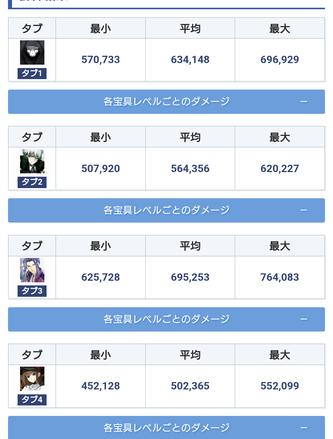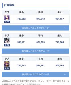 「続いては単体アタッカー編だ。各々条件は変わるが共通点はレベル120、ステ強化は3000、宝具レベル5、限凸黒聖杯、クラススコア全開放前提、マスター礼装はグランドバフ有り決戦礼装、クラスに等倍、特攻は全て刺さる前提でOCは1想定だ。」