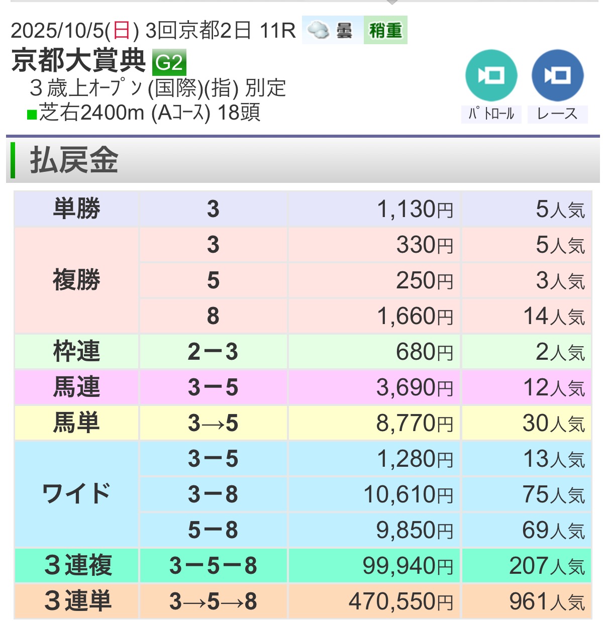 一発ぶち当てたのが京都大賞典なのはちょっと趣深い