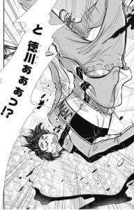 コースを予測して動く手塚に対して、打つ直前に軌道を変えることであるはずも無い幻の打球を追ってしまう手塚…のはずが