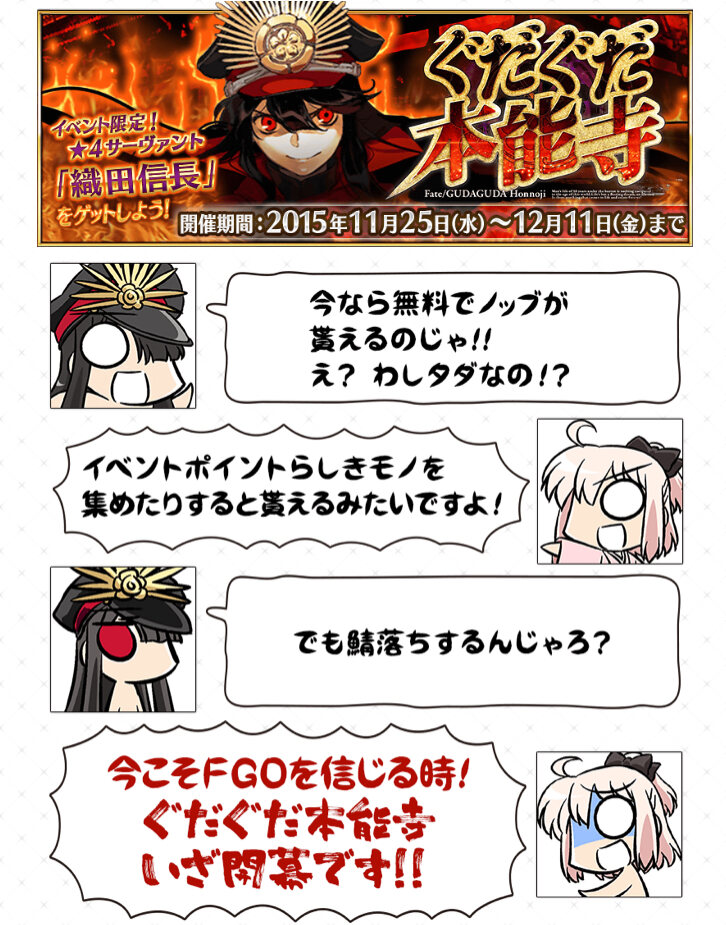 2部終章でノッブが旗掲げて1部終章ジャンヌの「聞け!この場に集う万夫不当の大英雄達よ!」のパロやる前振りくらいに思ってたわ