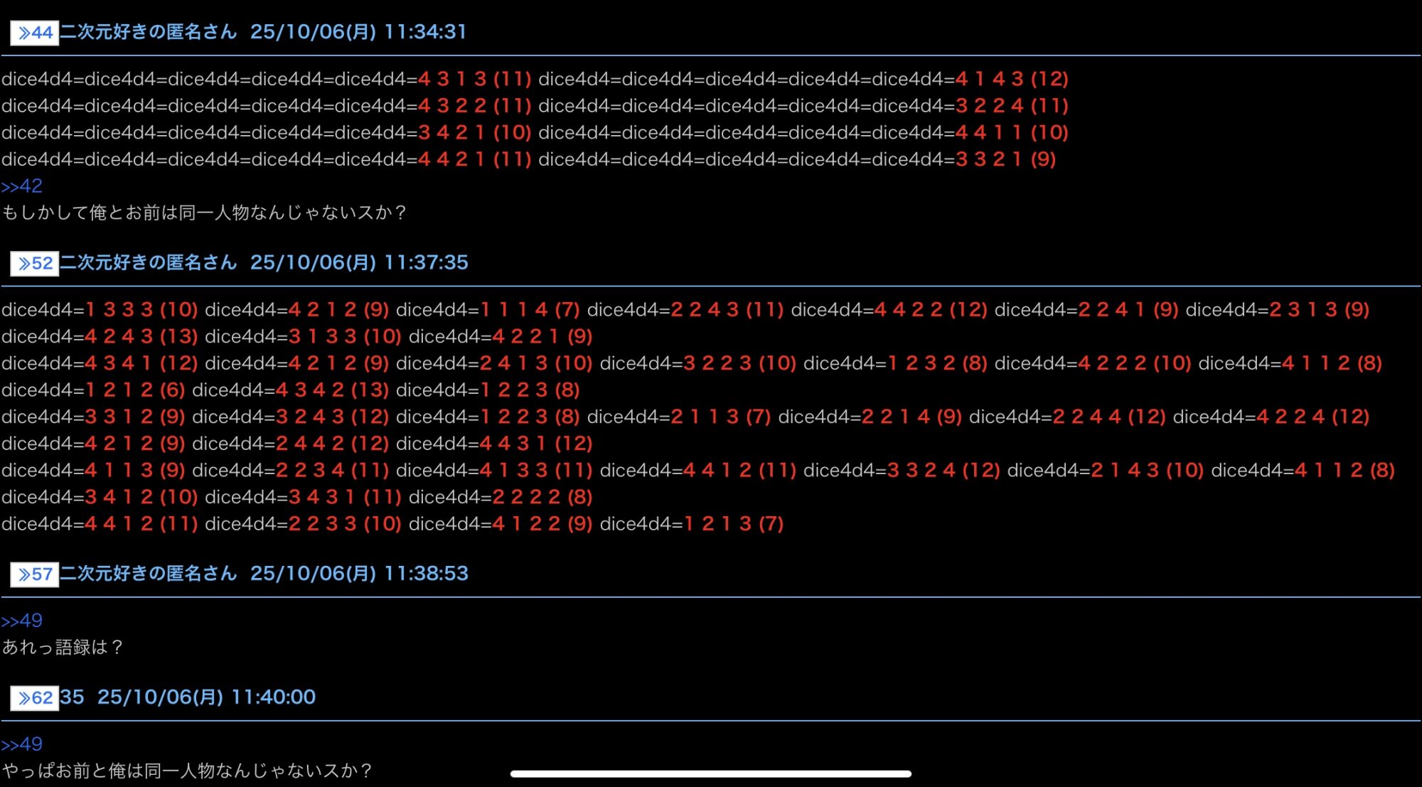 はーっ dice4d4=4 2 3 4 (13) よ死 ね!