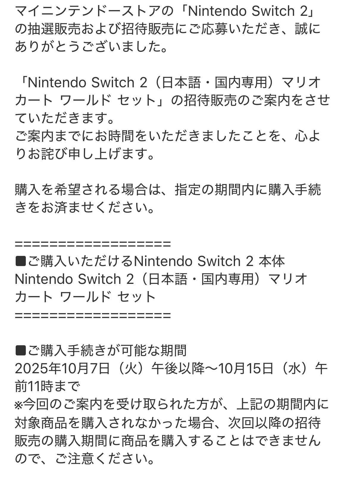 当たった人は購入期間を間違えちゃいけないぞ