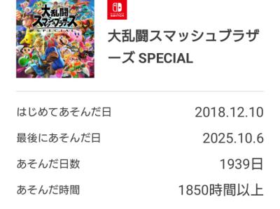 スマブラやらブレワイやらティアキンを一旦100時間でカウントしてるので実際は1000はゆうに超える見込み