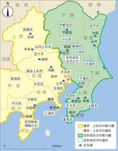 反面関東の西側や、武田氏の上総、里見氏の安房なんかは結構鎌倉時代とは様変わりしてるんかなあ