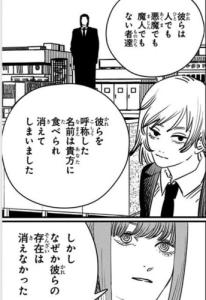 本誌読んだ時は武器人間がそれぞれチェンソーマンに食われて名前を失ったけど存在は消えなかったって意味だと思っていた