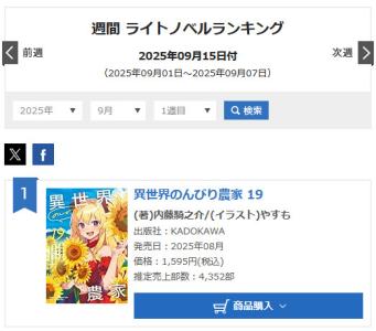 1位がなろうで4300部なら他の9月新刊の非なろうはそれにも全く届いてないってだけだけやんか?