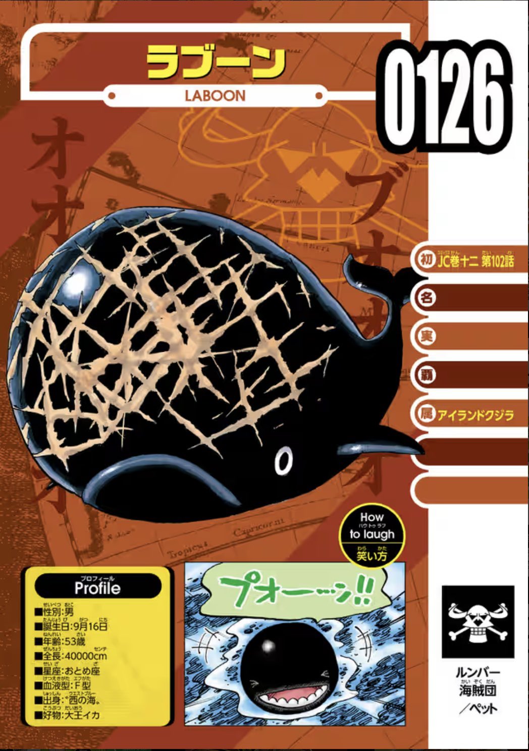 ラブーンは歯クジラなんだよな実際の歯クジラの最大種はマッコウクジラで体長は18m程度、グランドラインは規模が違うぜ