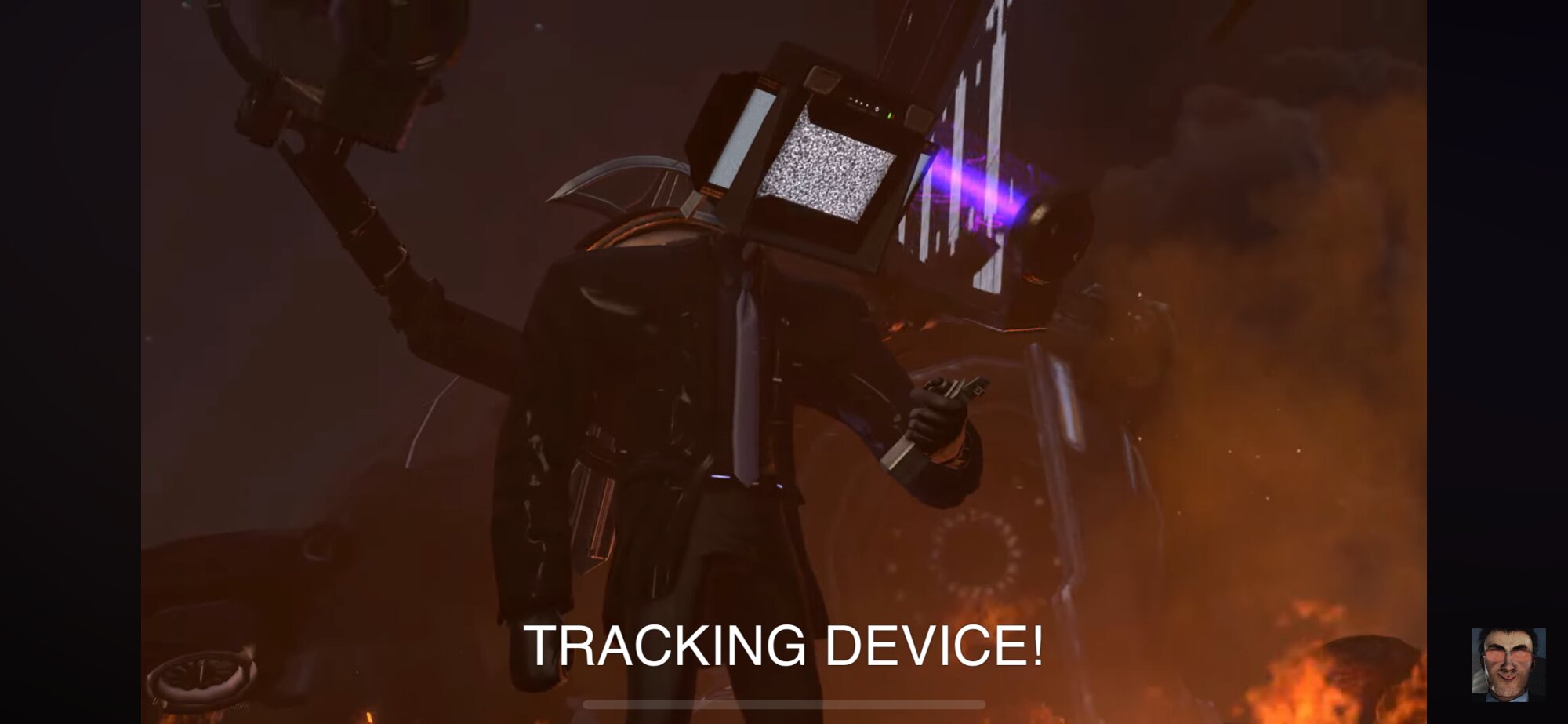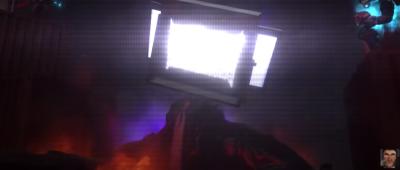 Large TV Man 2.0の液晶には激しいヒビが入り、彼は一瞬、機能を停止した。