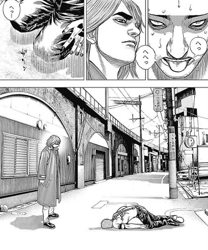 ランゴ・ストマックは「ぐあっ…」と短い悲鳴を上げたが、それ以上の言葉は出なかった。強靭な彼の身体は、その衝撃に耐えることができず、全身の骨が砕ける音が指揮官の通信機に響いた。彼は制御を失ったまま、まるで布のように路地裏の壁に叩きつけられ、激しく地面に転落した。彼の目からのレーザーは消え、彼は二度と動くことはなかった。