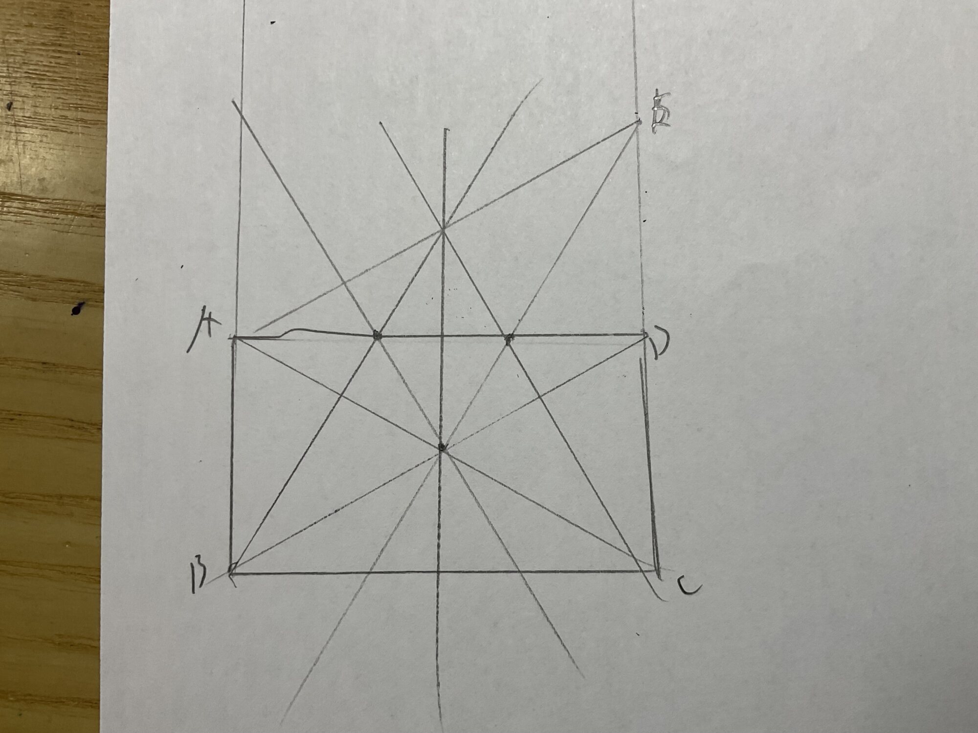 別にACとBDの交点からBC上に任意の点Eをとって線を引いてもいいけど
