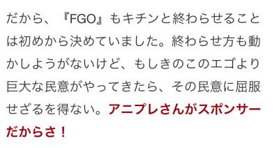 というかカノウさんのインタビュー見てるとアプデ関連、聖杯戦線、モーション改修とか色々語ってるし普通に今のfgo続いてくの確定してるからな