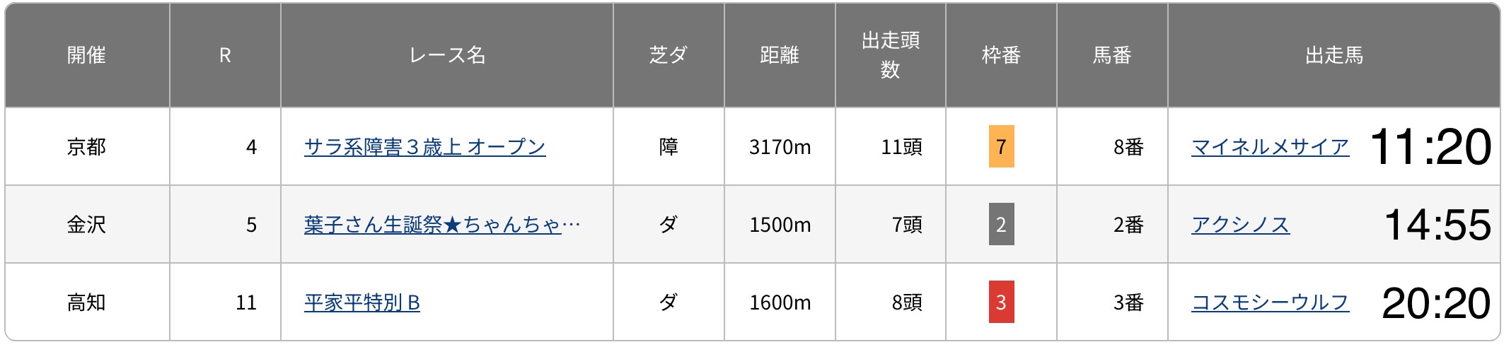 産駒出走情報