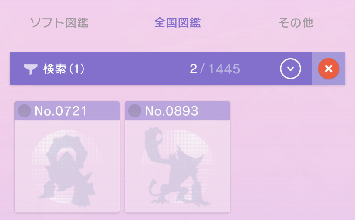 →No.890ムゲンダイナまでの幻含む全ての図鑑番号の登録