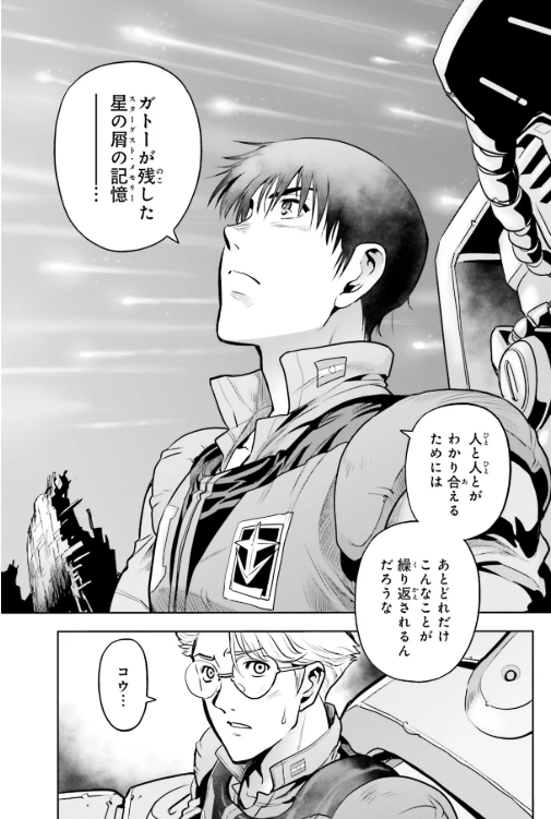 ウラキの実力を認めて名前を覚えたり、最後の決着をつけるために待っててくれるガトーは麻薬ですね…