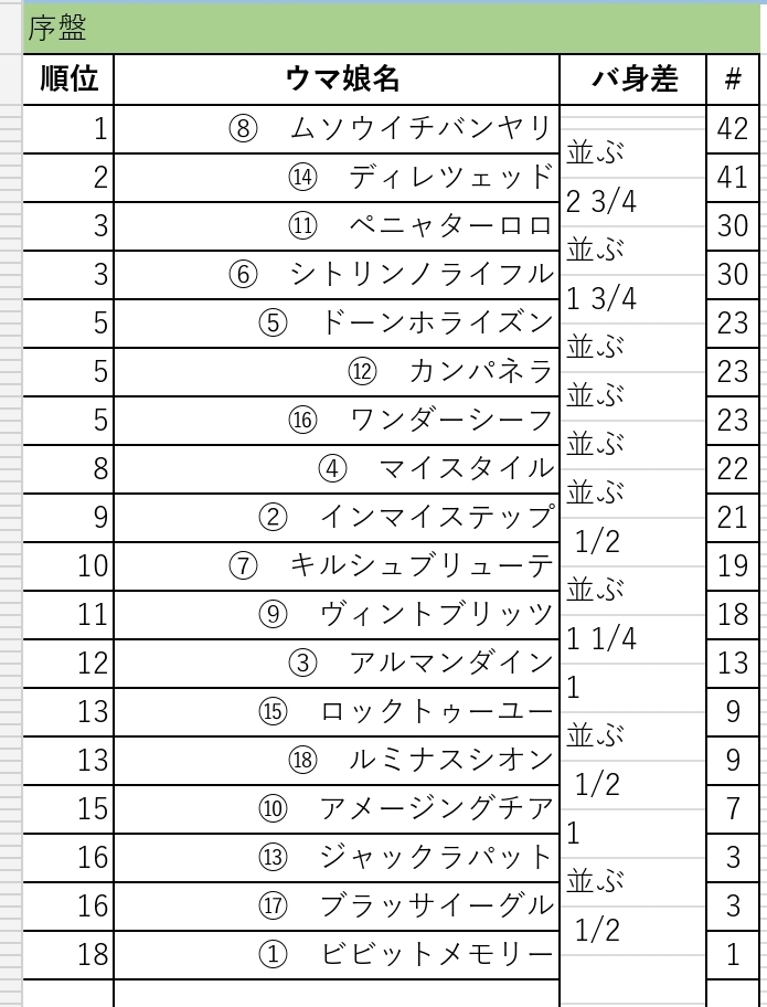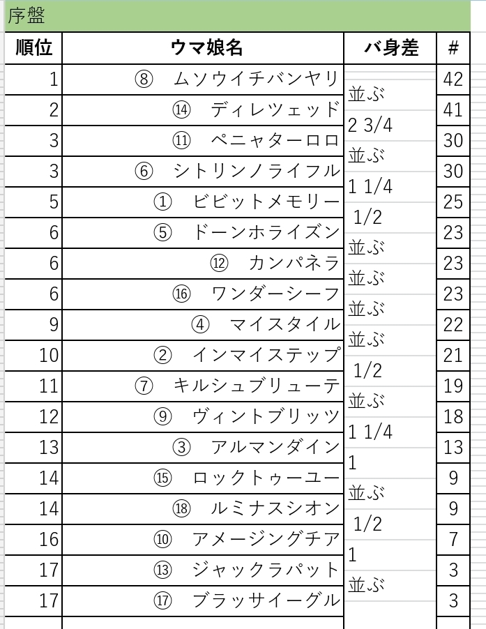 ⑥鳴尾記念勝って弾みをつけてから挑みたかったけど世の中ままならんもんだね。にしてもイタルダリアブーケさん大丈夫かな?遠征疲れからなのか精彩欠いていたみたいだったし。 - 14アメージングチア◆VklvHtCETs25/10/10(金) 21:32:22