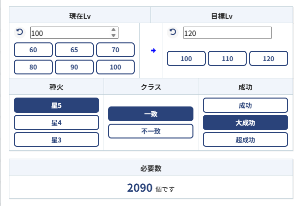 育成ボーナスのない通常時に120目指すのは無理です箱イベ数百箱空けてやねぇ…イベントやマナプリ交換で種火セット欠かさず交換してやねぇ…虚無期間は全部種火周回もウマいで!