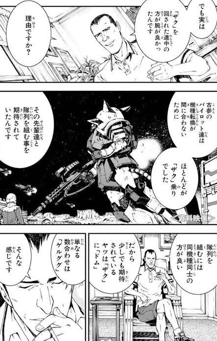 学徒兵は腕がいいやつから順番に古参と組ませるためにザクや"ドム"と組ませて腕が悪いやつはゲルググって書いてるやん