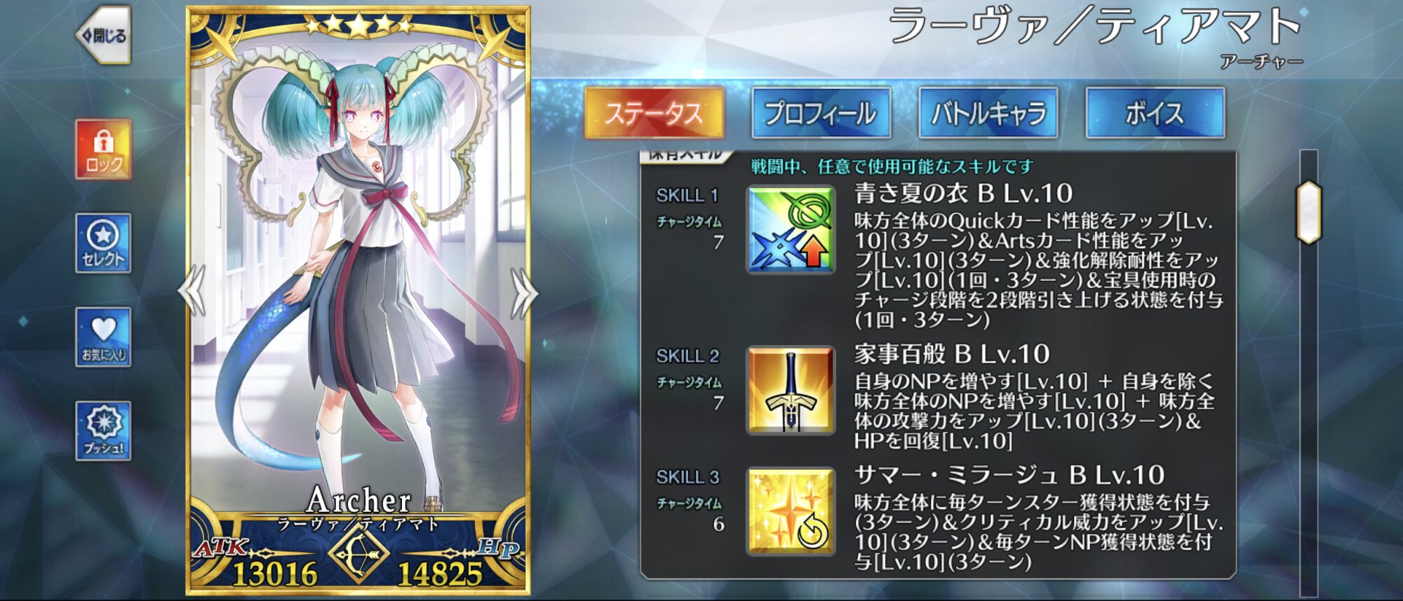 スキル3で味方全体に毎ターン星出し、クリバフ、NP獲得