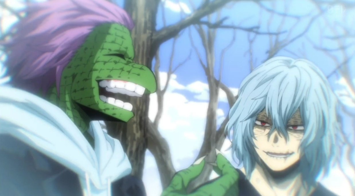 敵連合メンバーの荼毘、トガヒミコ、スピナー、トゥワイス、Mrコンプレス、そしてワイ(36歳童貞)
