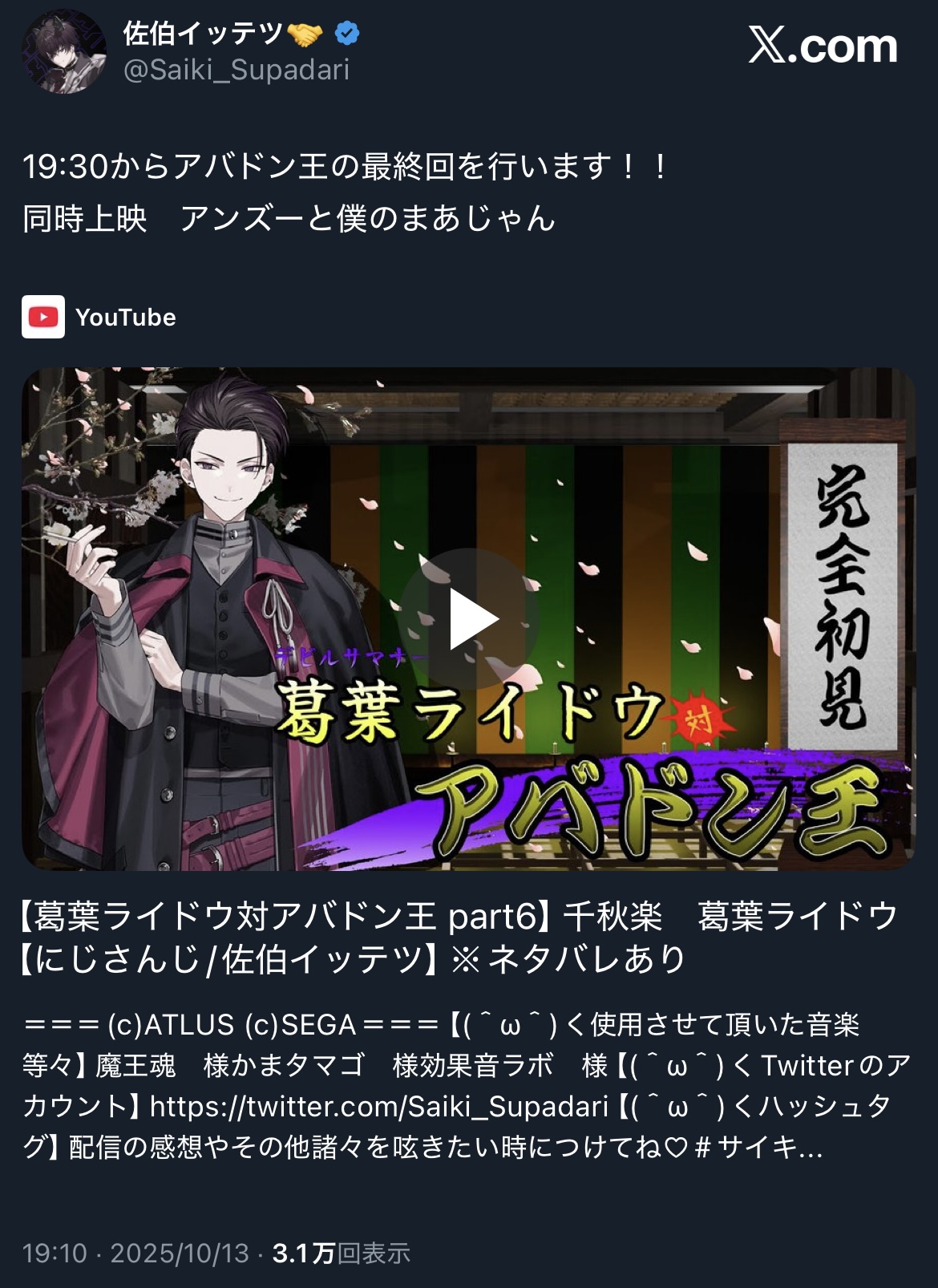 ライドウは毎回長時間配信になるなあw