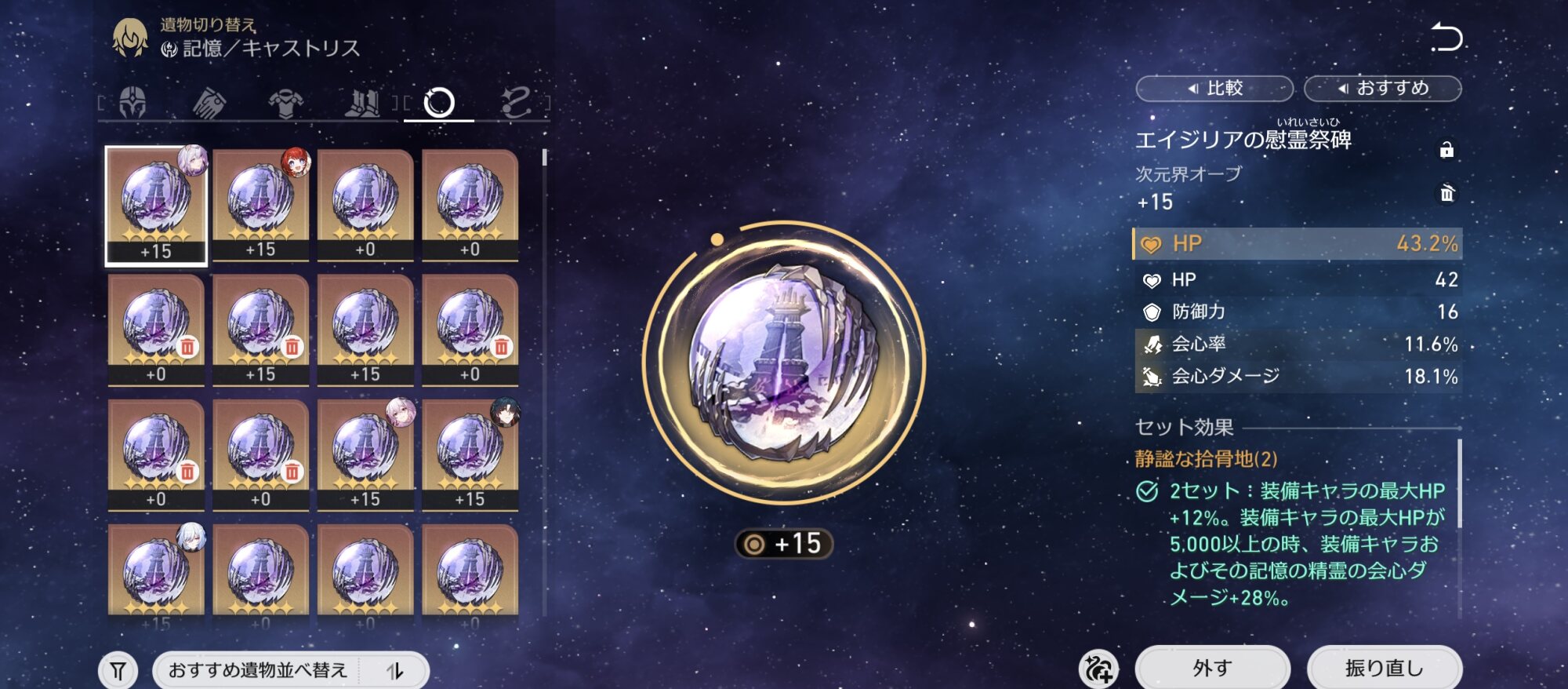 完全無課金かつ、キャラ無凸モチーフ光円錐なしで、異相の仲裁キング☆1くらいしかない