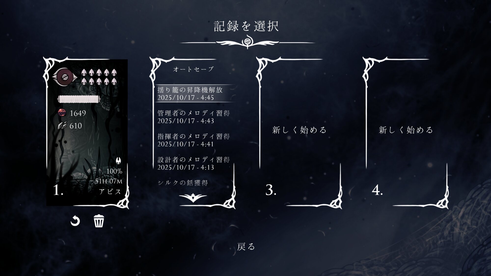 『ホロウナイト:シルクソング』なるべく楽にスピードラン実績の解除を目指す(5時間以内にクリア)『Hollow Knight: Silksong(ホロウナイト:シルクソング)』なるべく楽にスピードラン実績の解除を目指すことを目標にした記事。スピードラン実績についてスピードラン実績の条件は、5時間以内に2章をクリアすること。ルートを把握...keigame.net - 83二次元好きの匿名さん25/10/18(土) 01:33:22