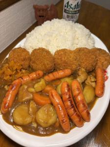 ドカ食い気絶部の晩酌ですね🍞🍛🌭🍺