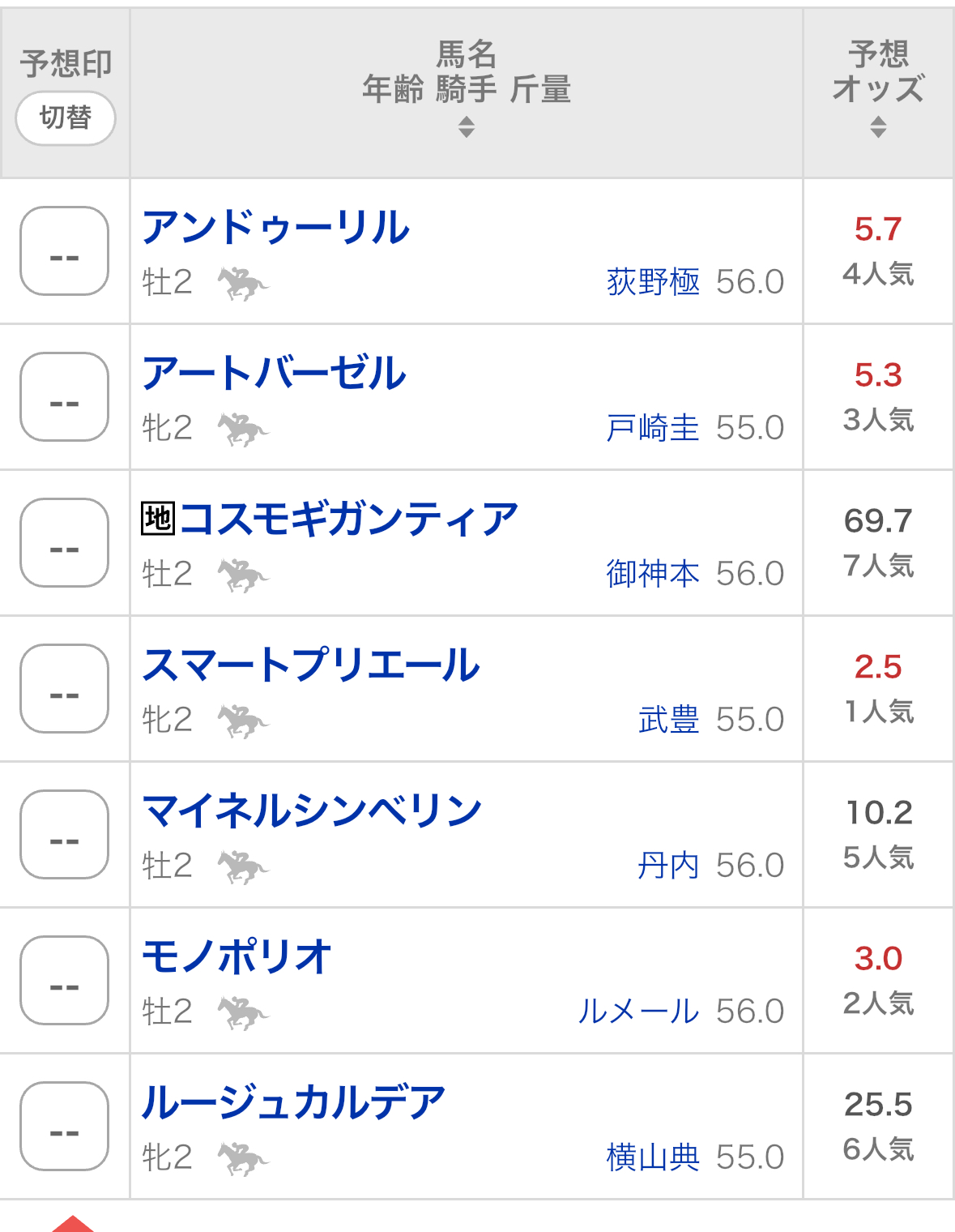 マイネルとコスモが浮きすぎてる