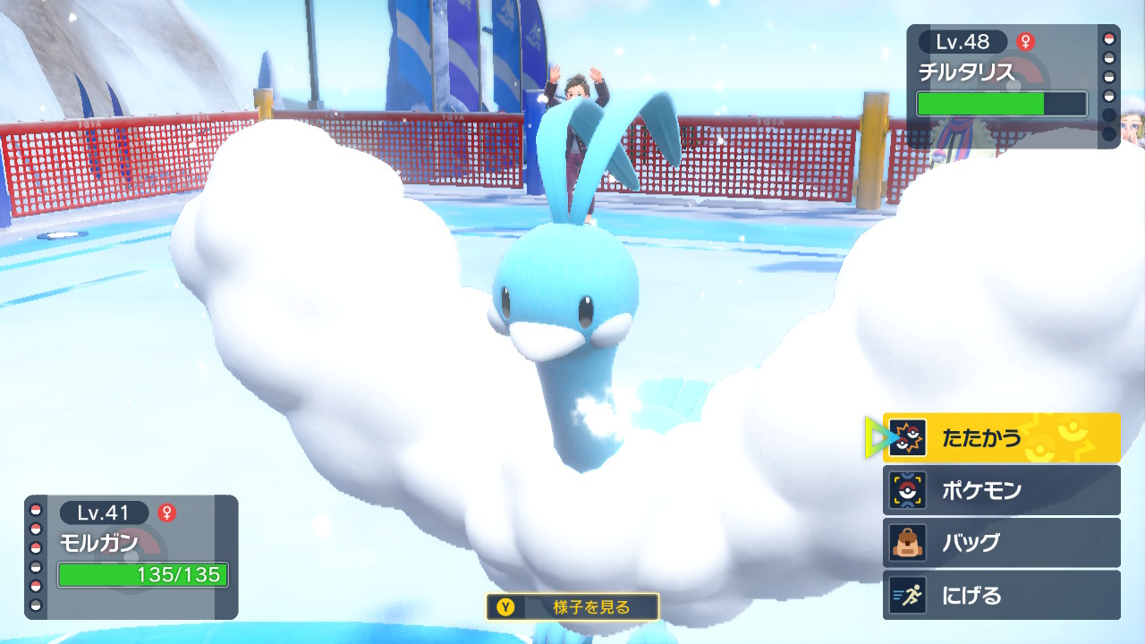 ちなみにモルガンにはねこだましを覚えさせていたんですが先発がモスノウということは技の追加効果を受けないのでねこだましはただの低威力先制技になりました