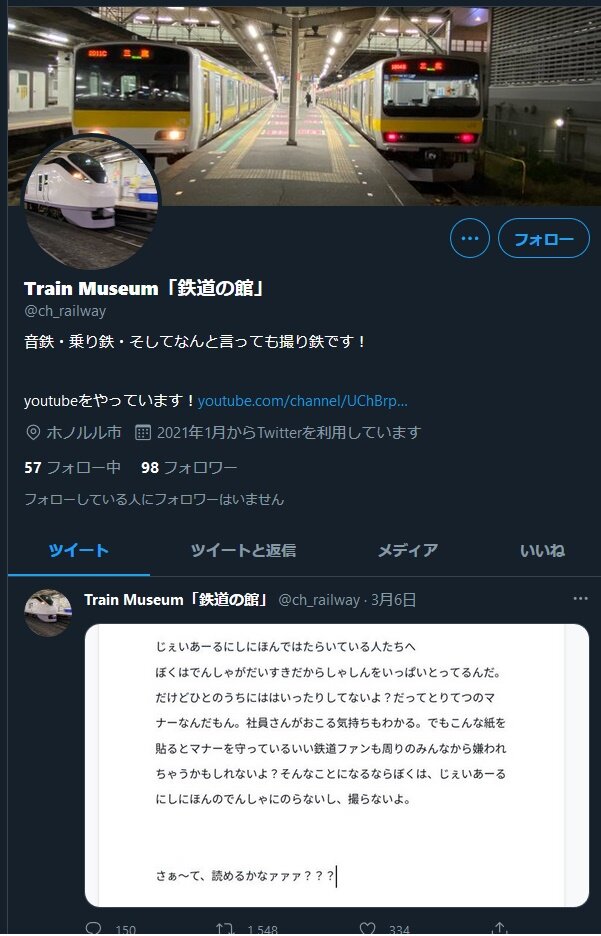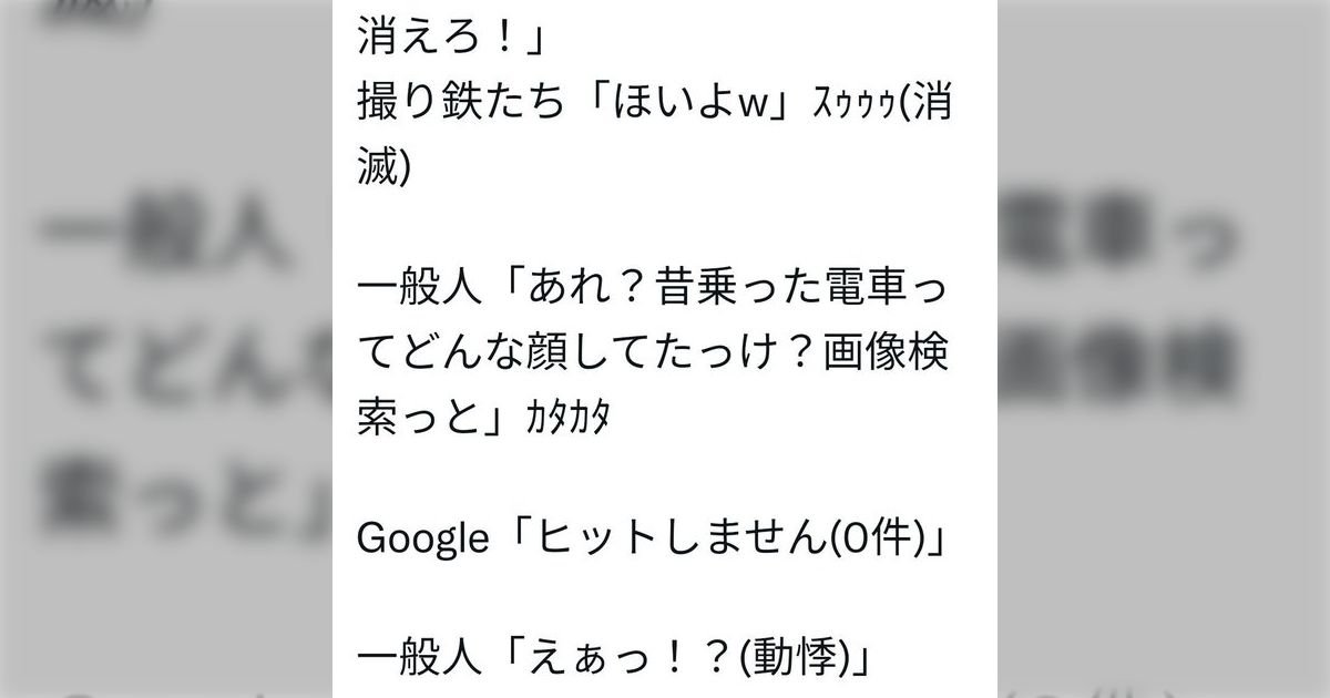 なあオトン…コイツらが「これだから撮り鉄は」の構図に持っていきたい蛆虫でないんなら撮り鉄ってのはもしかしてみいちゃんやつばさくんやマオくんの類なんやないかな?
