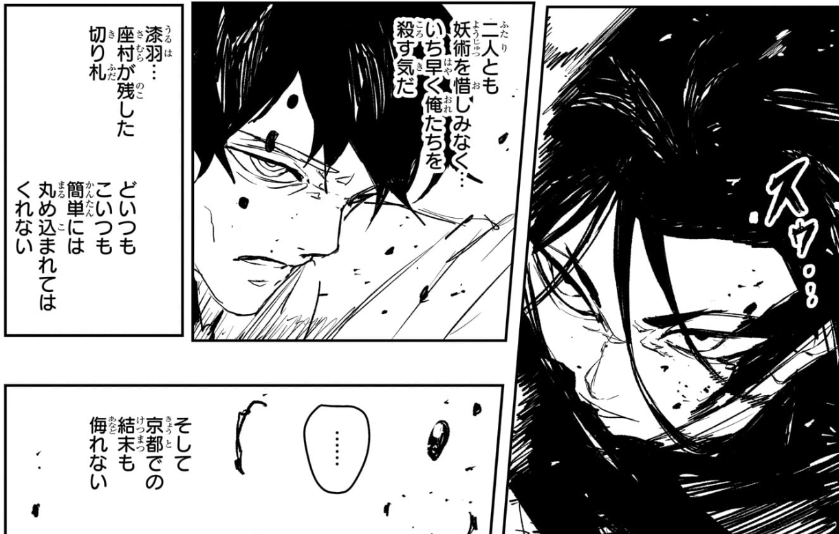 北兜幽戦は漆羽と奈ツ基が妖術使うようになったら優勢になったんでここで実力の格付けは済んだって思ったな