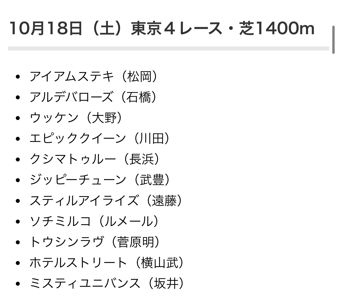 ルメール、川田、タッケ、りゅーせー、武史くらいの期待度じゃないかね - 18二次元好きの匿名さん25/10/14(火) 19:19:14