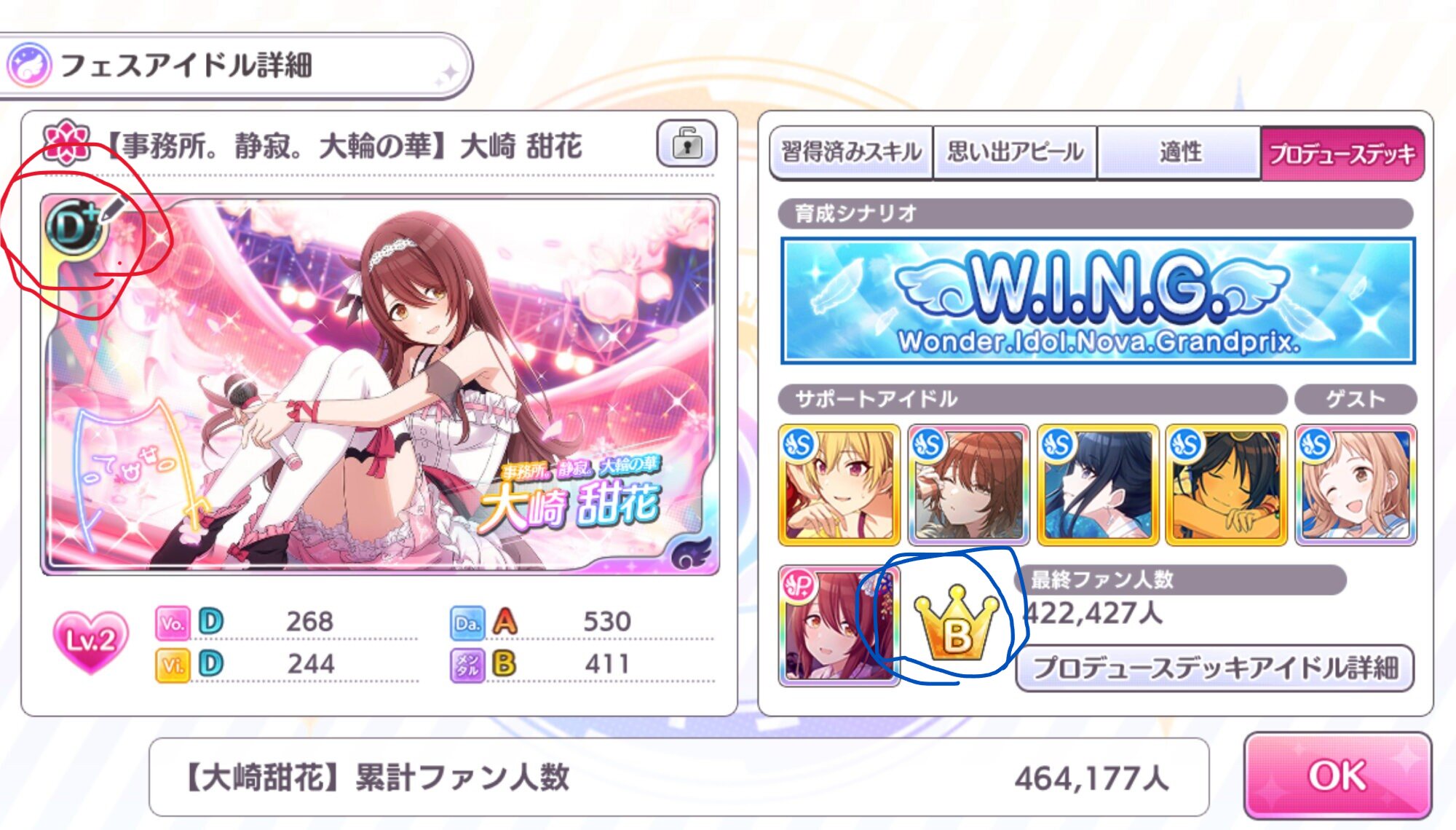 ステータス高くしてアピール値の基本値上げたほうがオーディションが安定しやすいから、ついでに自分のステータス上げればサポのアピールも増えるので