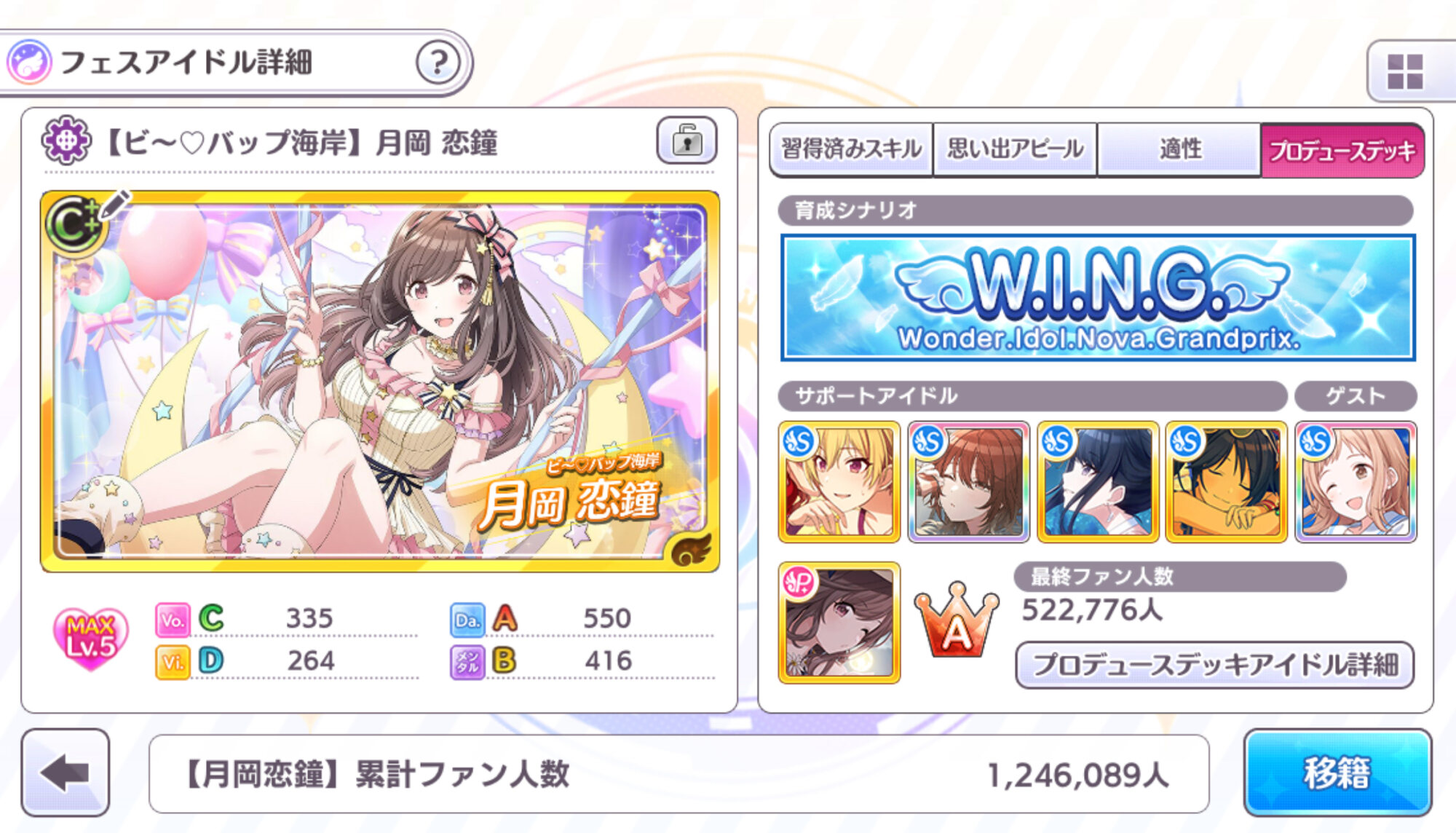 クリア後のファン数ボーナス50万人で+150だったっけ?それでサポート特有のアピールをとる