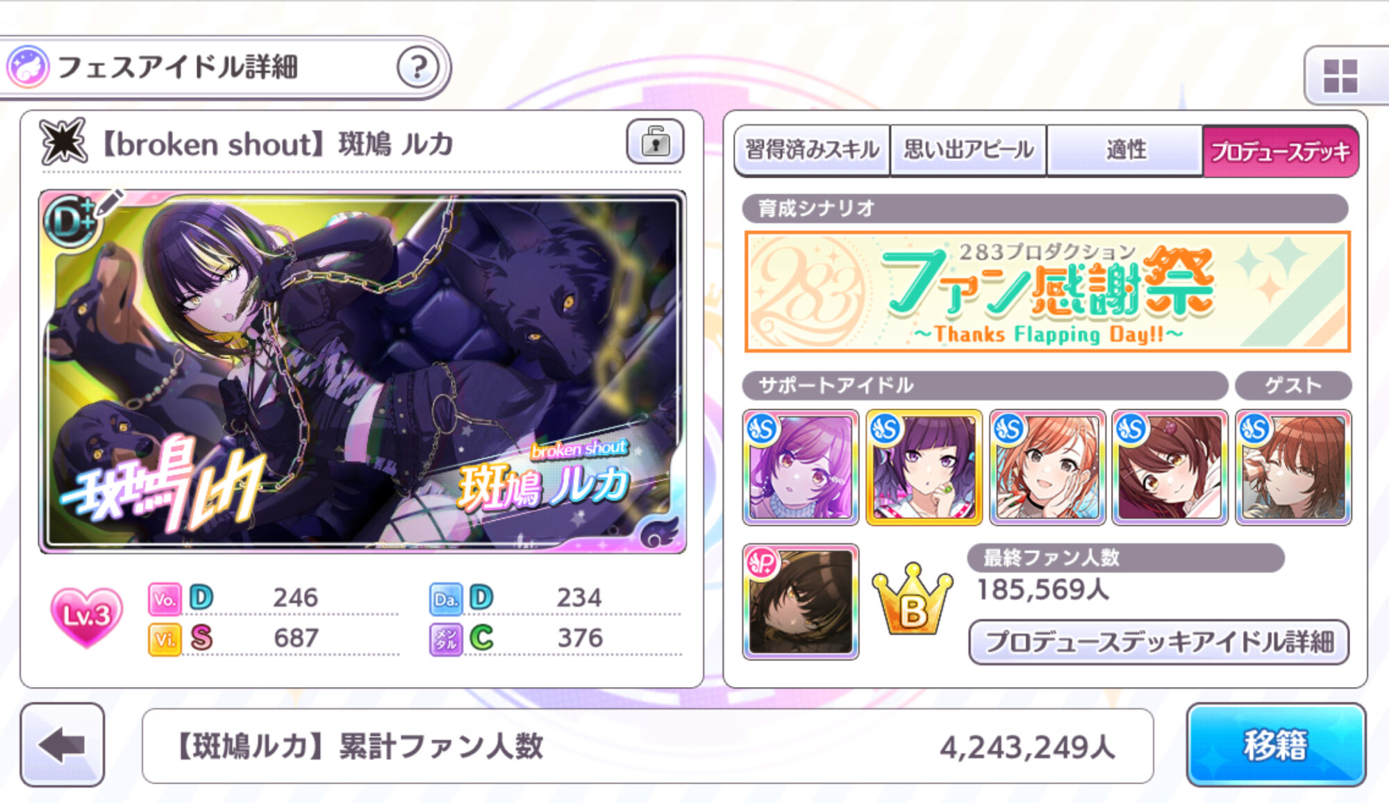 もう一点挙げればExスキルにVi滞在を乗っけまくって可能な限りビジュアルレッスンにサポートが来るように仕向ける