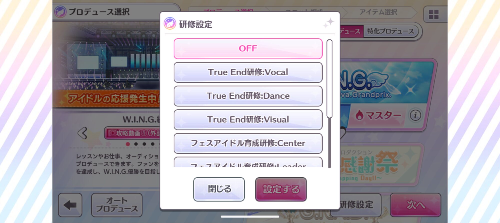 シーズン2はトークイベントやレッスンでメインのステータス+SPを稼ぎ、最後の一ターンでオーディションの「夕方ワイドアイドル一番!」。(スキルさえ取れていれば、流行関係なく基本はいける)