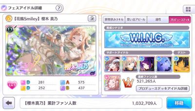 ユニットマスタリーのために摩美々の夜夜中(こっちも所持の中ではマスタリーが優秀)と三峰はメロビ確保も兼ねて編成